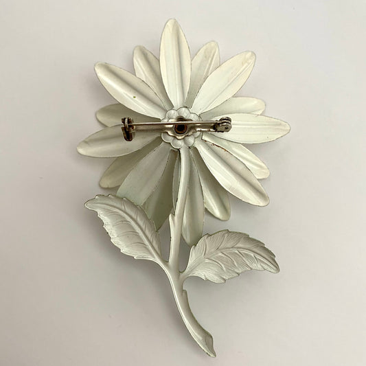 Late 60s/ Early 70s Large Daisy Enamel Flower Brooch
