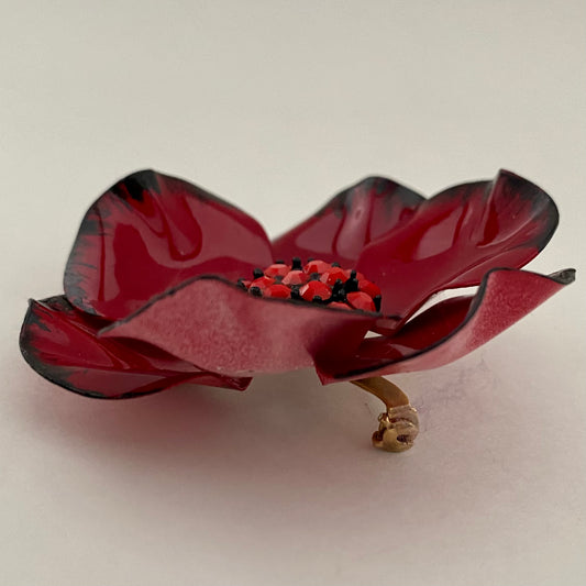 Late 60s/ Early 70s Red Enamel Flower Brooch