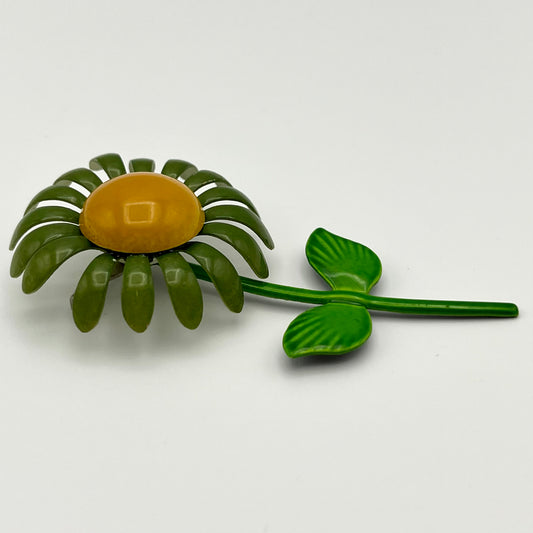 Late 60s/ Early 70s Olive Green Enamel Flower Pin