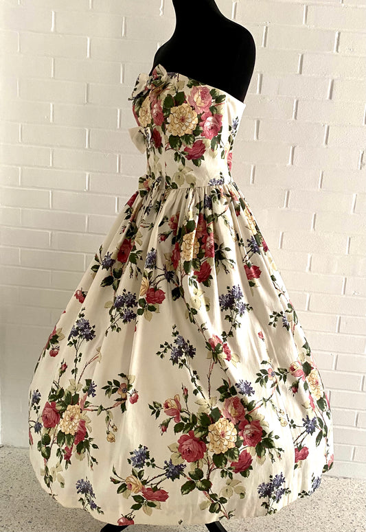 Late 60s/ Early 70s Flowered Organza & Chiffon Maxi Dress