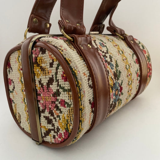 Late 60s/ Early 70s Needlepoint Barrel Bag
