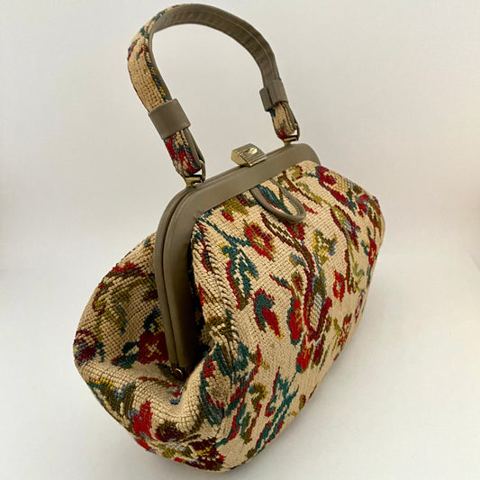 Late 50s/ Early 60s Classy USA Floral Needlepoint Handbag