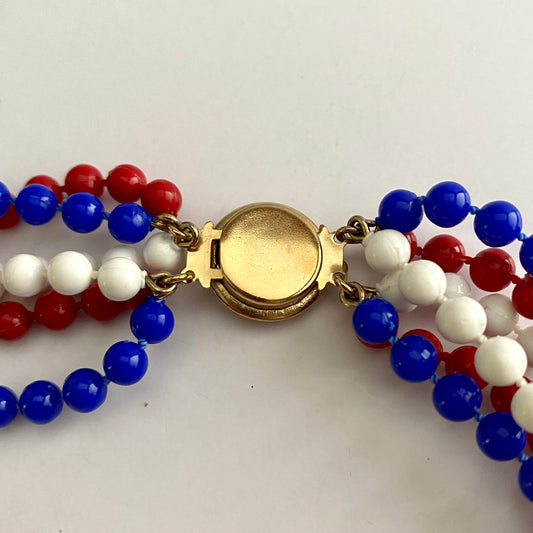 Late 60s/ Early 70s Red, White & Blue Beaded Necklace