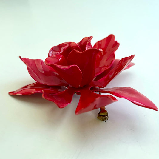 Late 60s/ Early 70s Red Enamel Flower Brooch