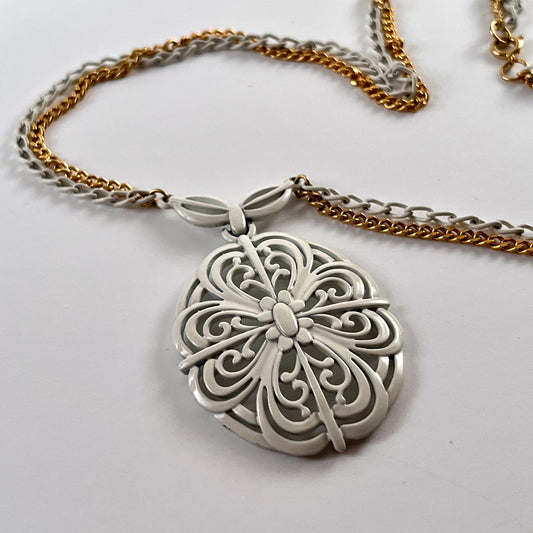 Late 60s/ Early 70s White Enamel Pendant Necklace