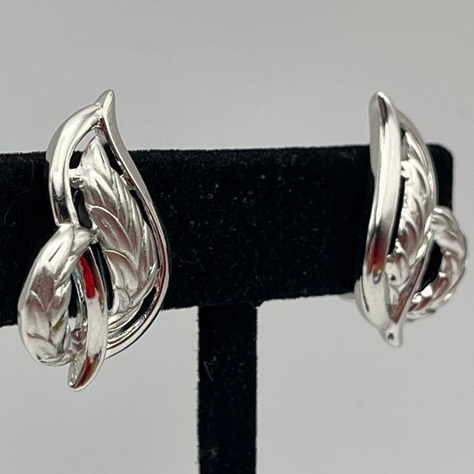 1960s Trifari Crown Abstract Leaf Clip Earrings