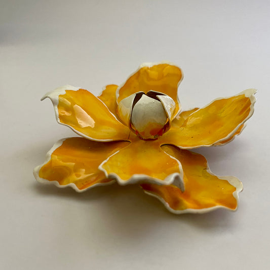 Late 60s/ Early 70s White & Gold Enamel Flower