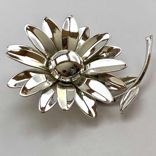 Late 60s/ Early 70s Large Silver-Tone Daisy Brooch
