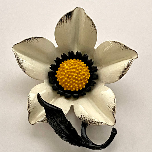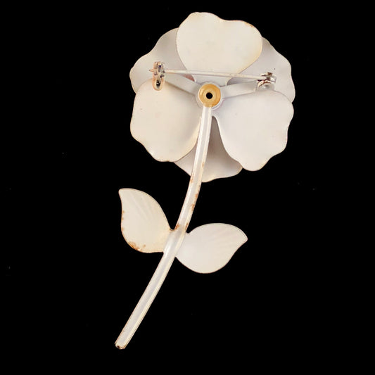 Late 60s/ Early 70s White Enamel Flower Brooch