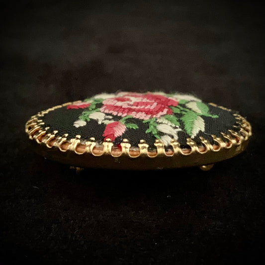 Late 70s/ Early 80s Petit Point Embroidered Brooch