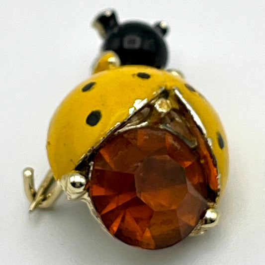 Vintage Enamel & Rhinestone Lady Bug Brooch