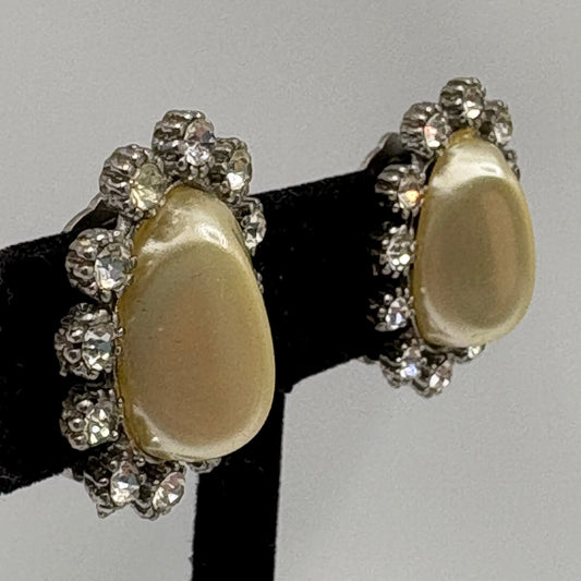 Late 50s/ Early 60s Rhinestone & Lucite Flower Earrings