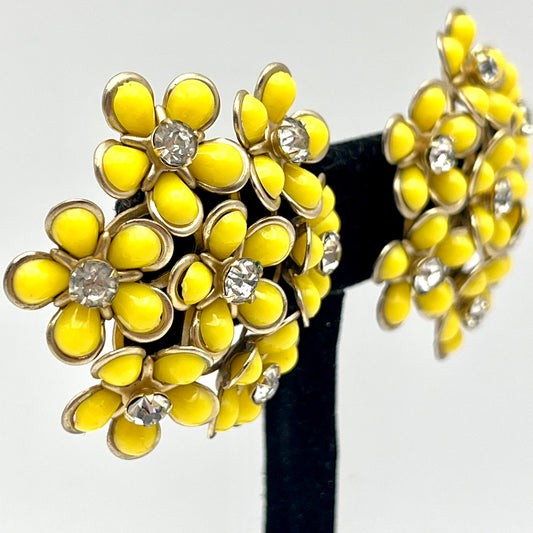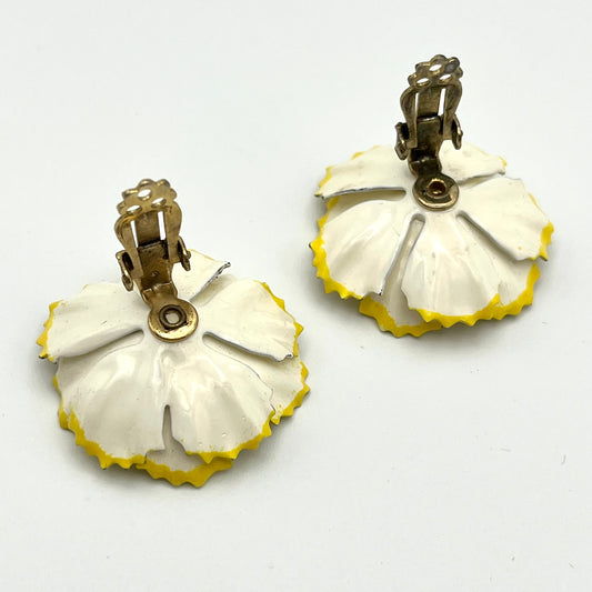 Late 60s/ Early 70s Yellow & White Enamel Flower Earrings