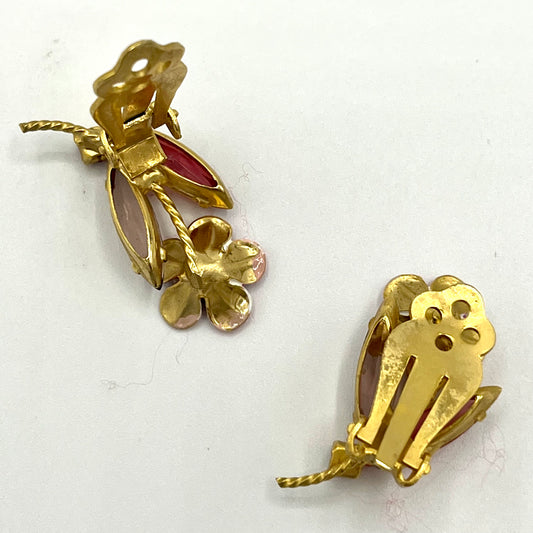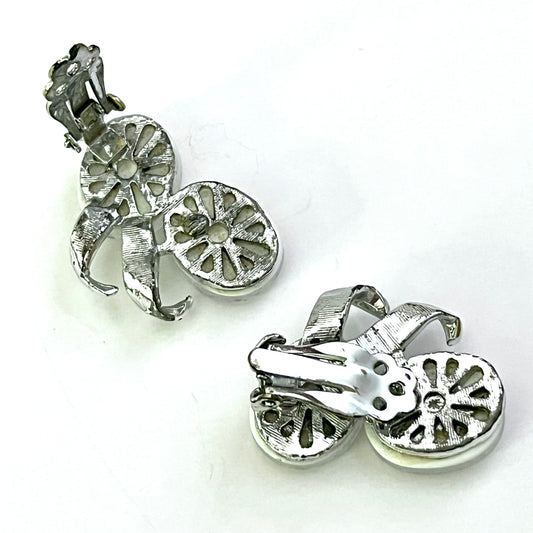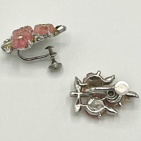 Late 50s/ Early 60s Rhinestone & Lucite Flower Earrings