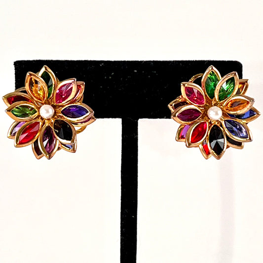 Late 70s/ Early 80s Multi-Color Flower Earrings