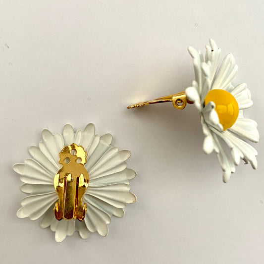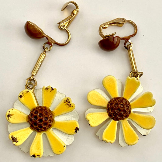 Late 60s/ Early 70s Daisy Enamel Flower Earrings