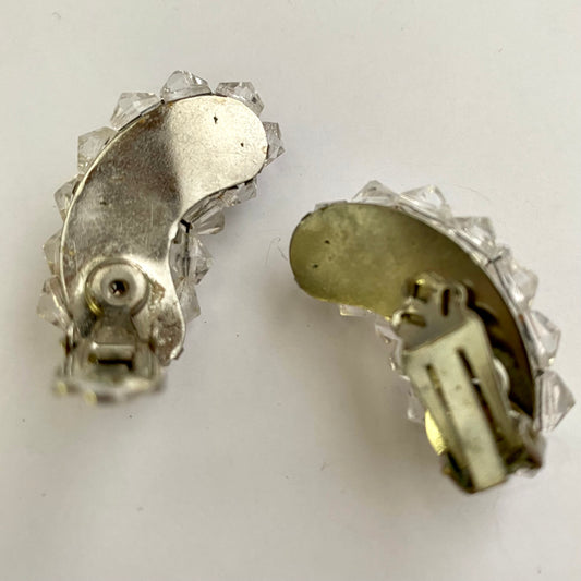 Late 50s/ Late 60s Crescent-Shaped Glass Crystal Earrings
