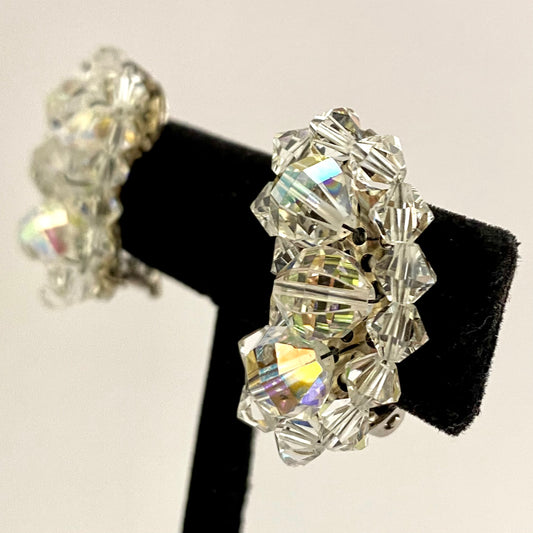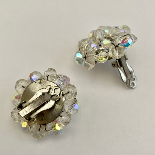 1960s Aurora Borealis Crystal Bead Earrings