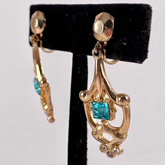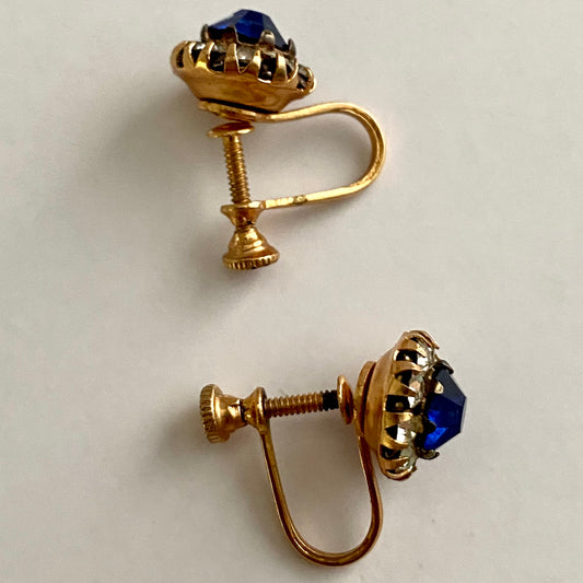 1950s Sapphire Blue Rhinestone Earrings
