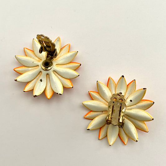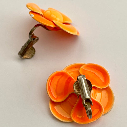 Late 60s/ Early 70s Orange Enamel Flower Earrings