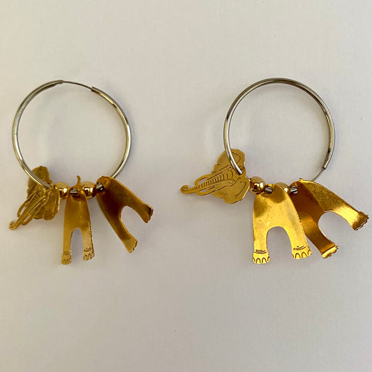 1990s 3-Dimensional Elephant Hoop Earrings