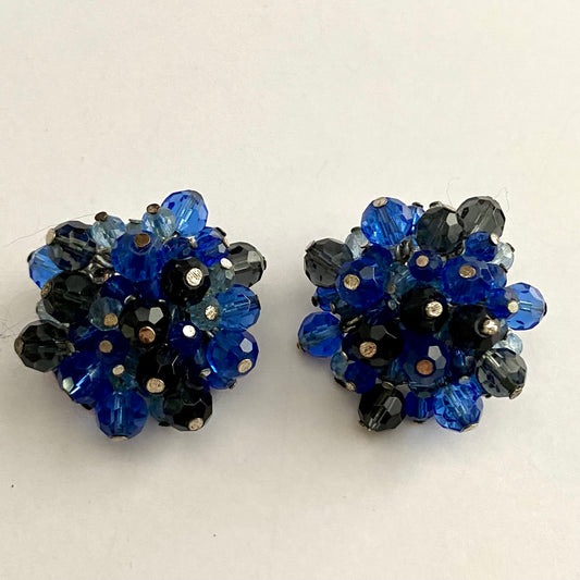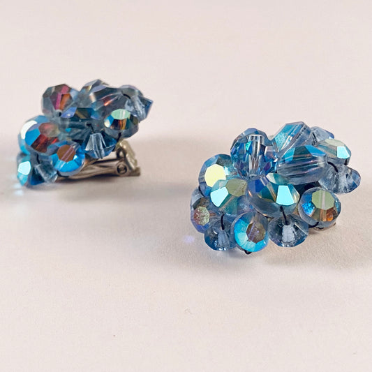 1960s Blue Aurora Borealis Bead Earrings