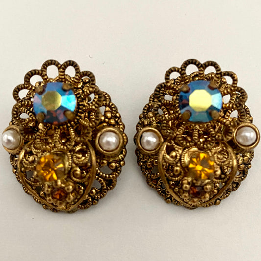 1950s Germany Gold-Tone Spun Wire Brooch & Earrings Set