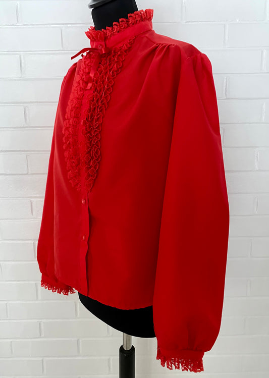Sold out1980s Rhapsody Red Ruffled Blouse