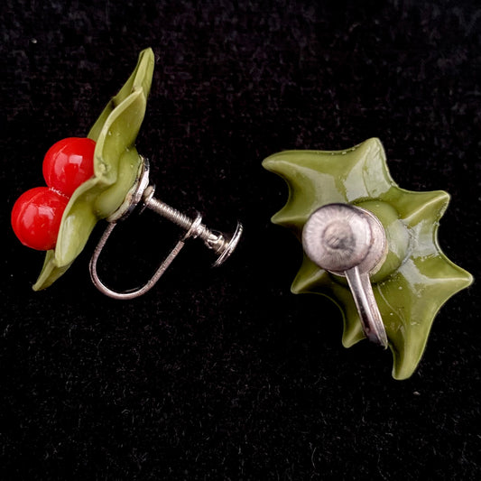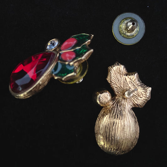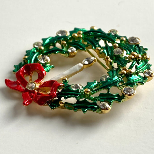 Late 80s/ Early 90s Holly Wreath Enamel Brooch