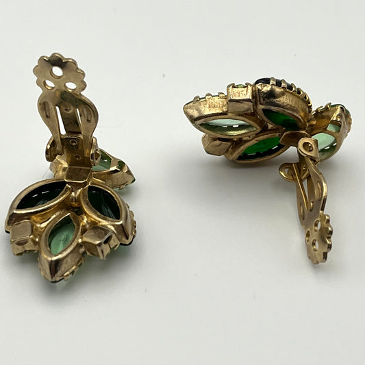 1960s Green Navette Rhinestone Earrings