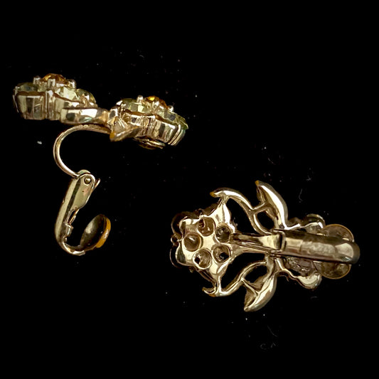 Late 50s/ Early 60s Coro Rhinestone Flower Earrings