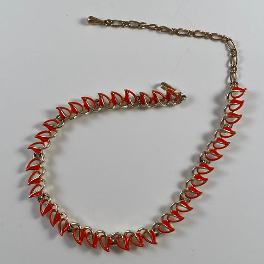 1960s Enamel & Gold-Tone Metal Leaf Necklace
