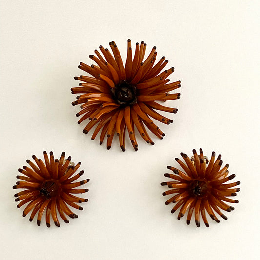 Late 60s/ Early 70s Enamel Flower Brooch & Earring Set