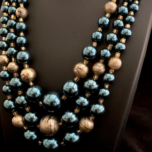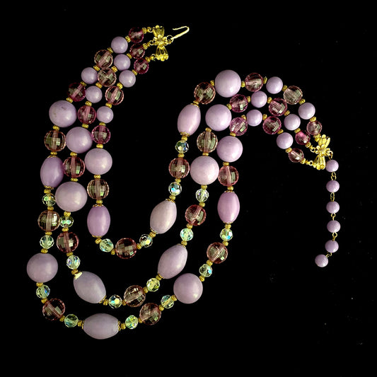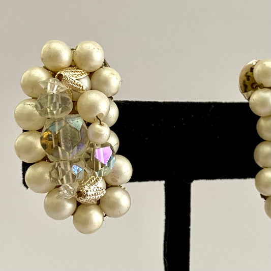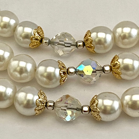 1960s Japan Faux Pearl & Crystal Bead Necklace