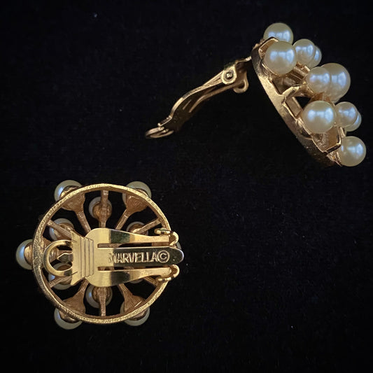 1960s Marvella Gold-Tone & Faux Pearl Earrings