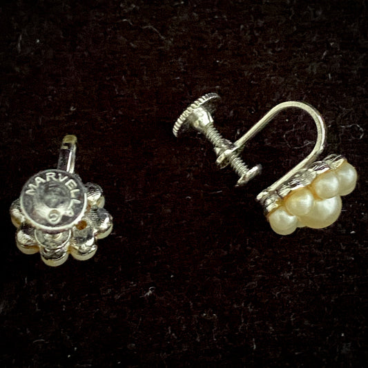 Late 50s/ Early 60s Marvella Pearl & Rhinestone Earrings