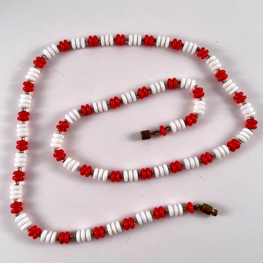 Late 60s/ Early 70s Red & White Glass Bead Necklace & Earring Set