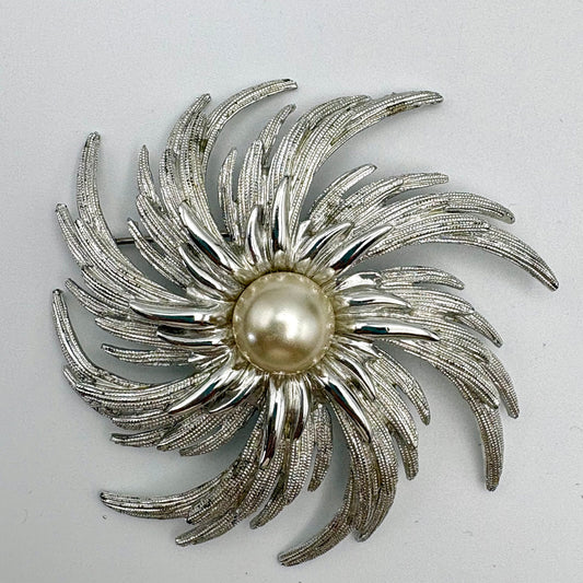 1969 Sarah Coventry Silvery Sunburst Brooch & Earrings