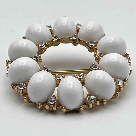 1950s Trifari Crown Cabochons & Rhinestone Circle Brooch