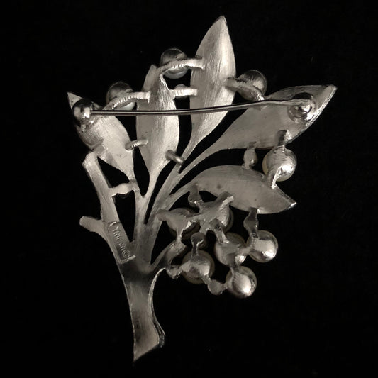 1960s Crown Trifari Pearl & Rhinestone Leaf Brooch