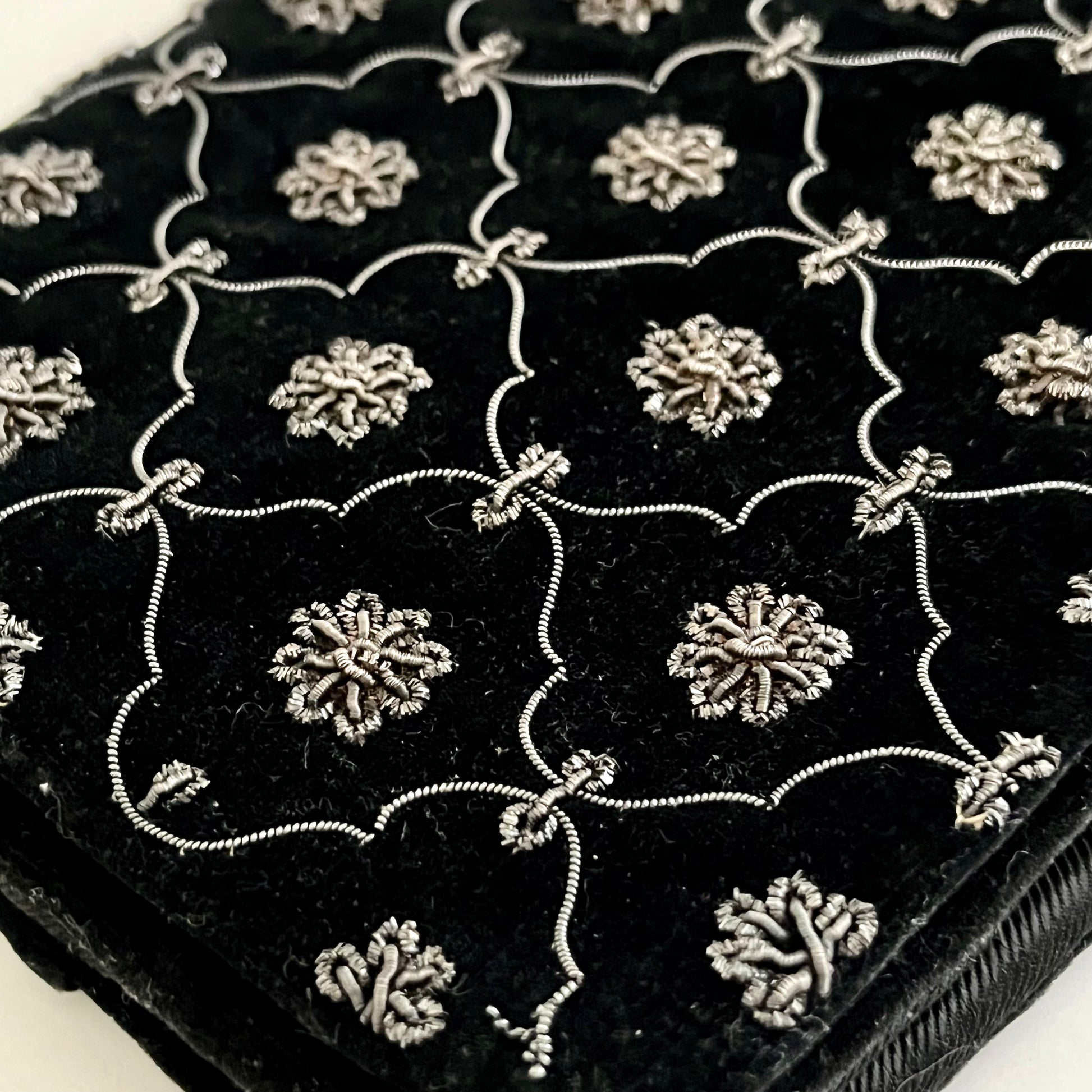 1950s Jagat Black Velvet Gold & Silver Embroidered Clutch