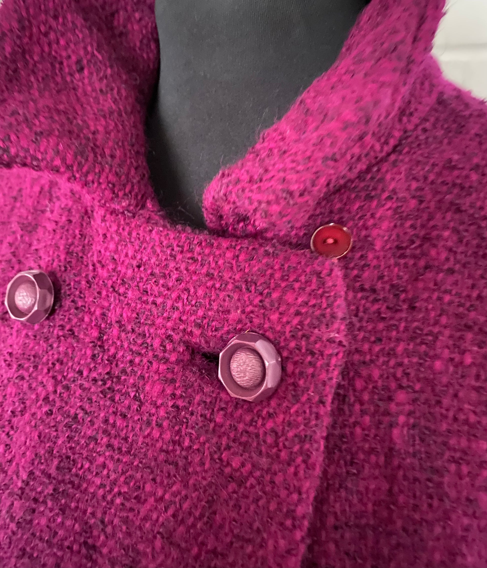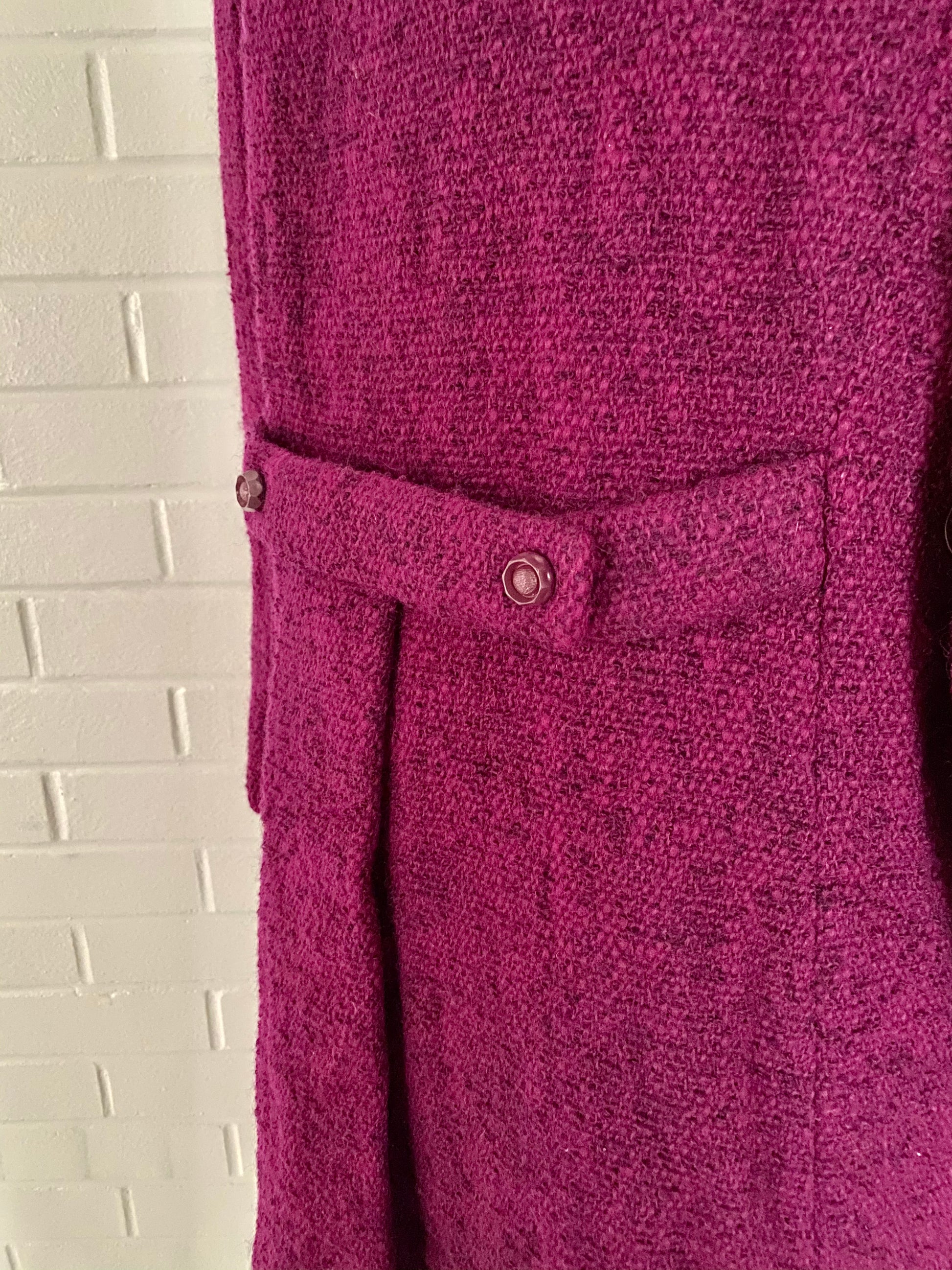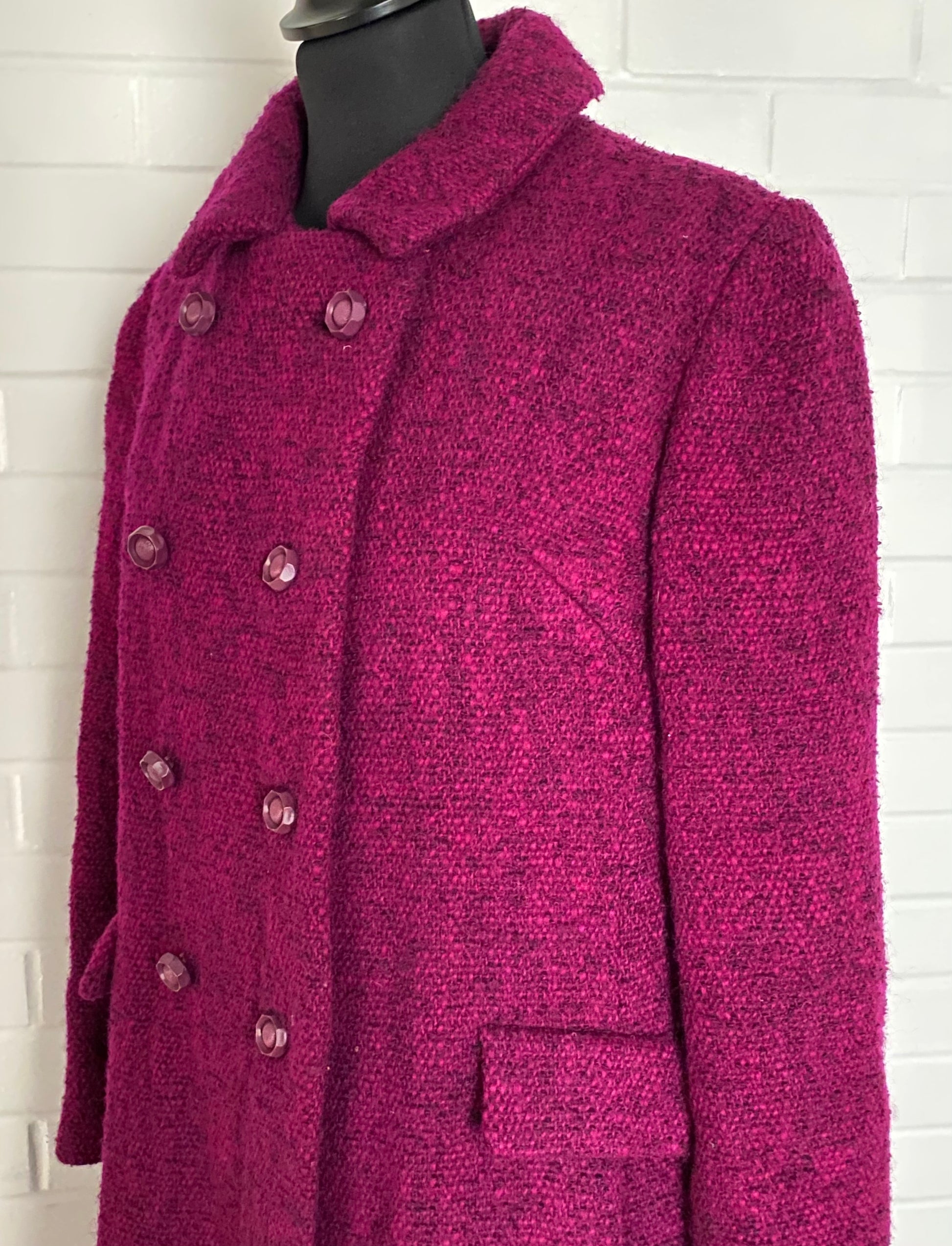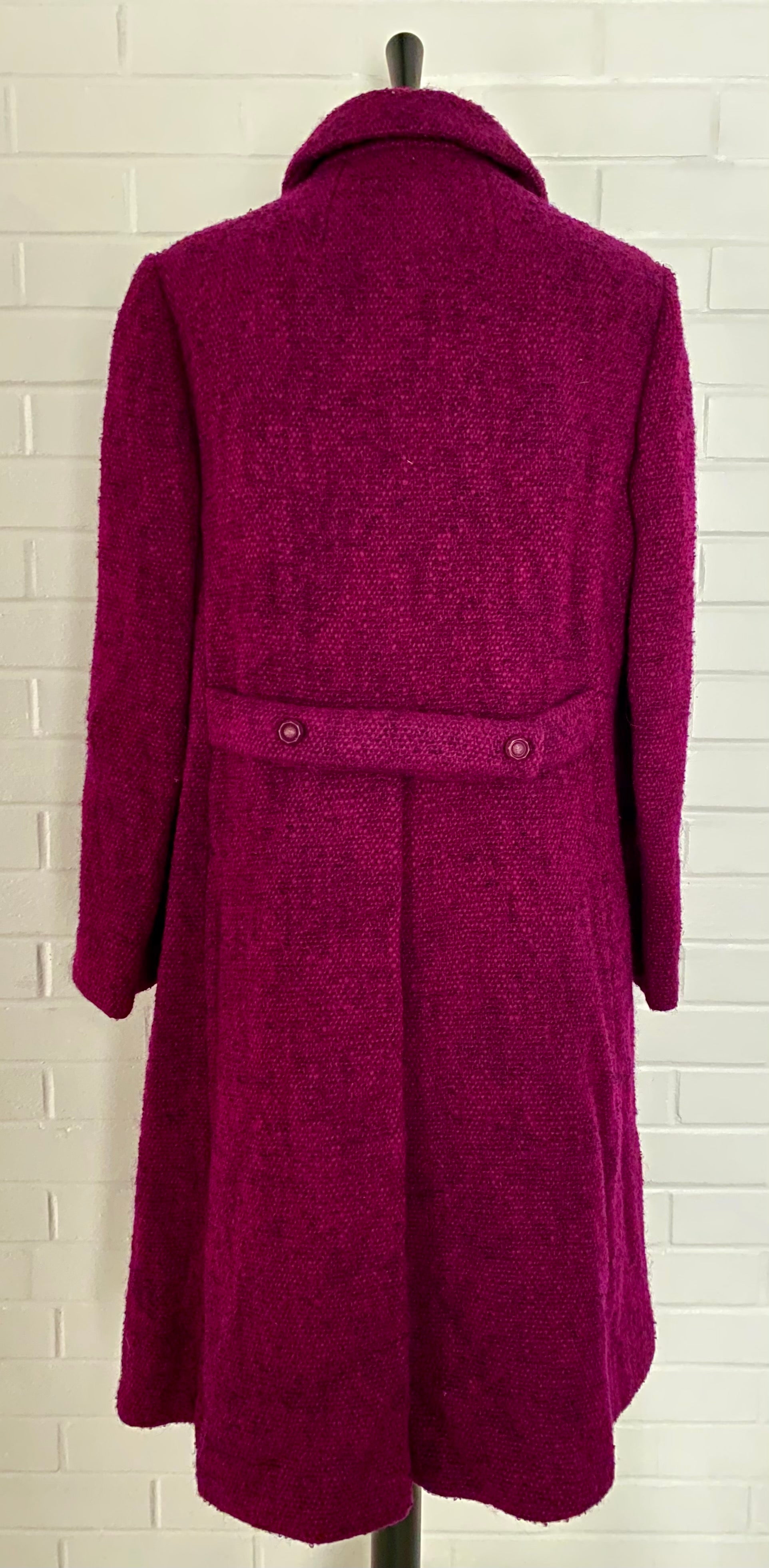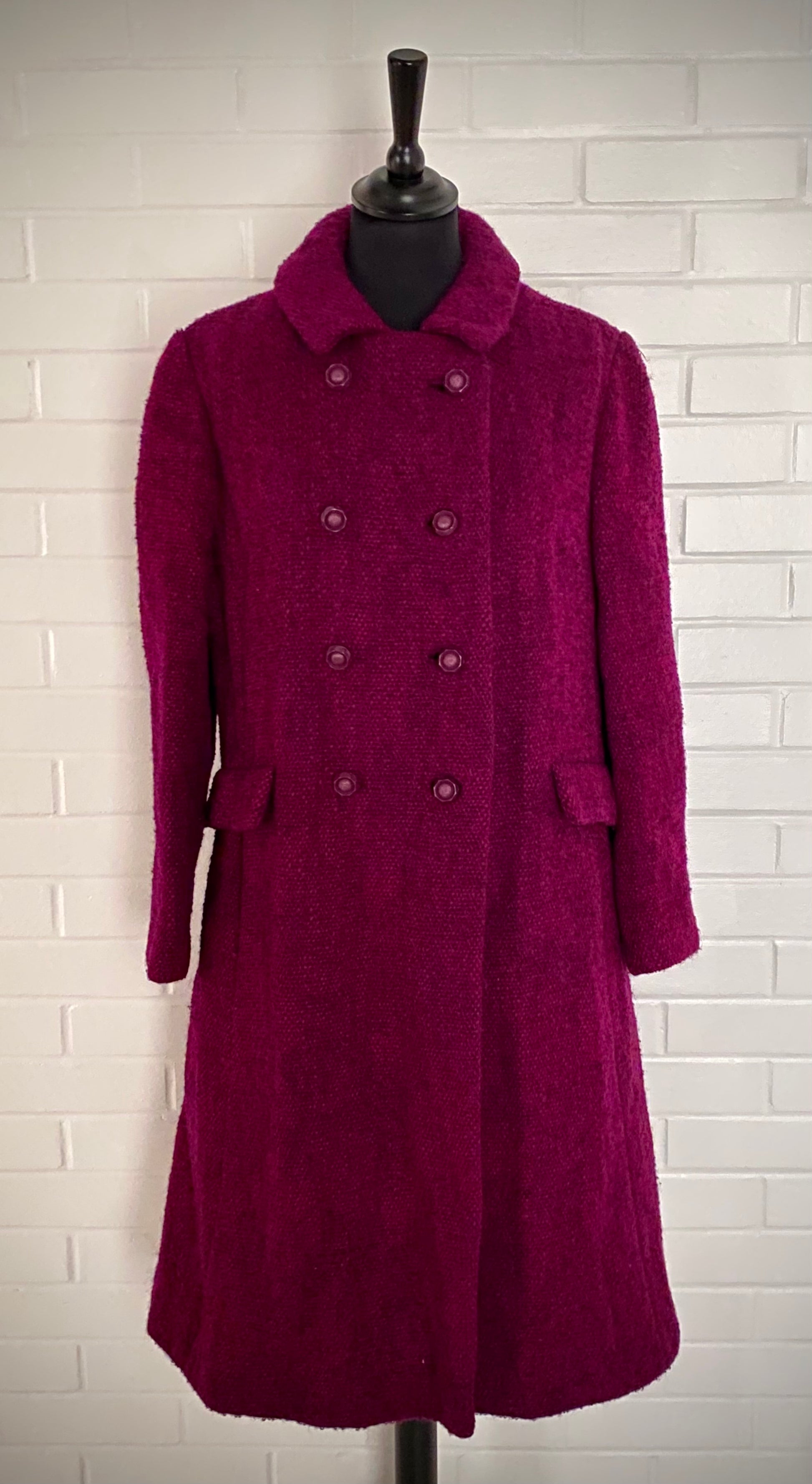 Style: Double breasted, long sleeve coat with a convertible, closed collar, back belt with buttons design detail & it is fully lined
