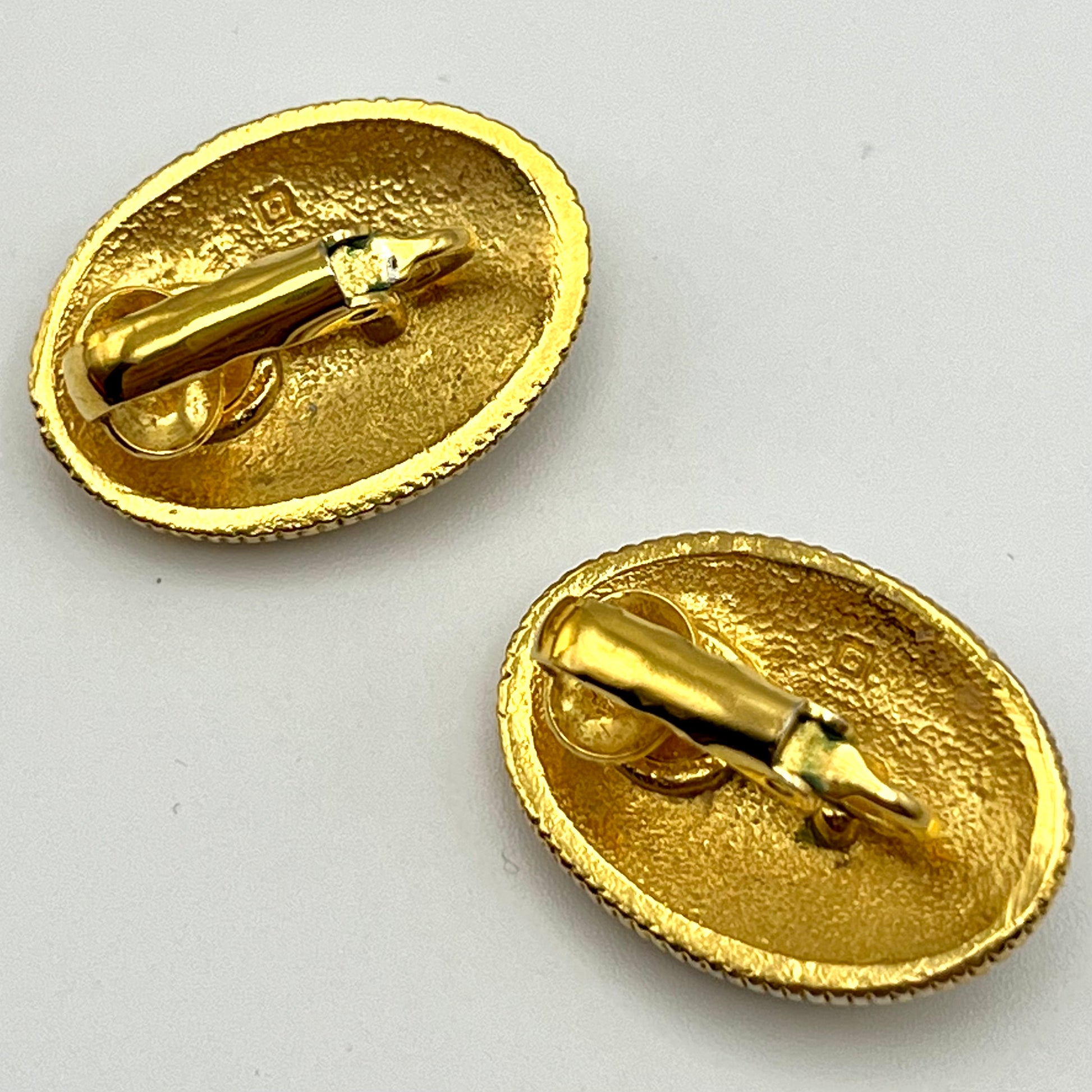 1960s Gold-Tone & Green Enamel Oval Earrings