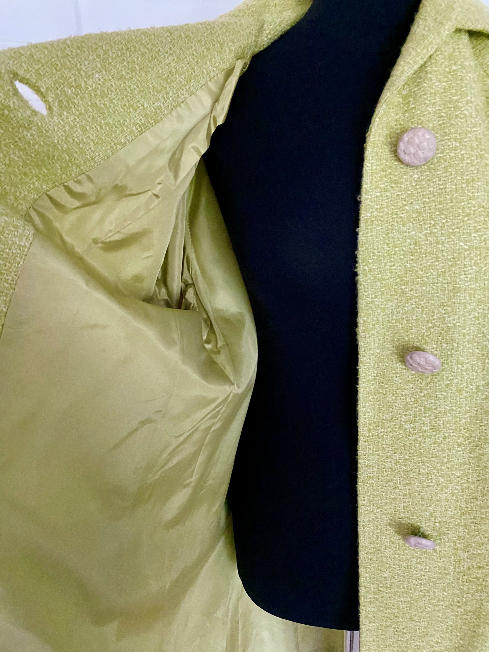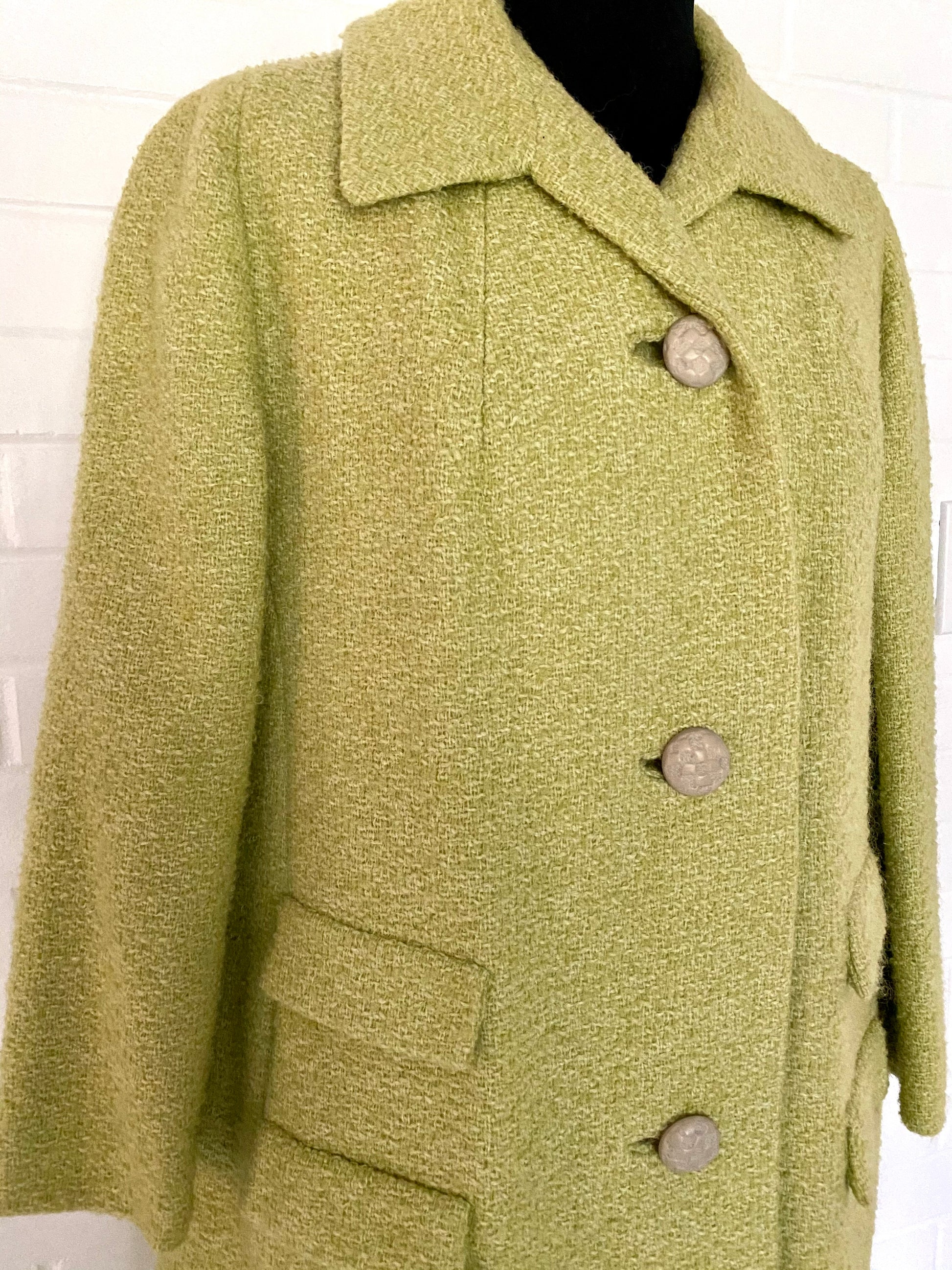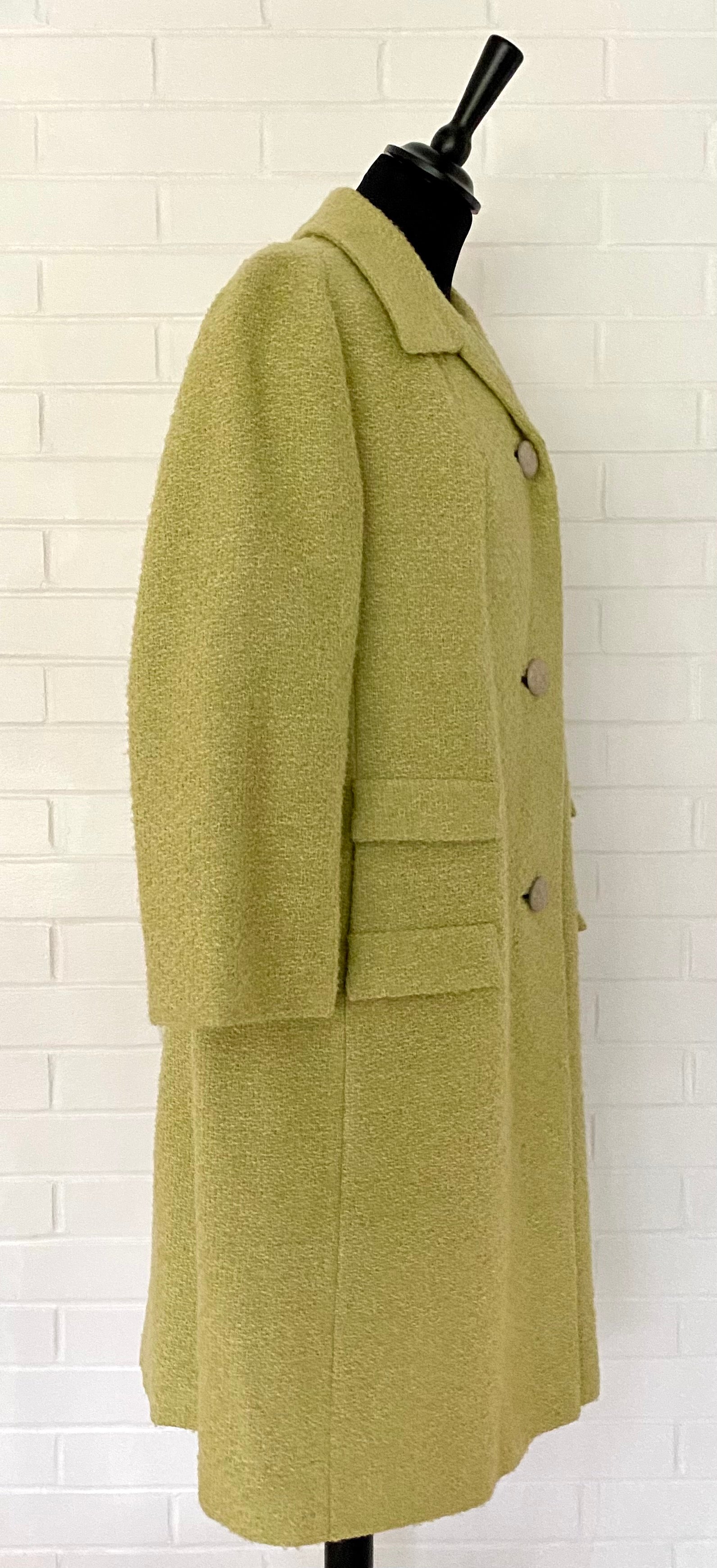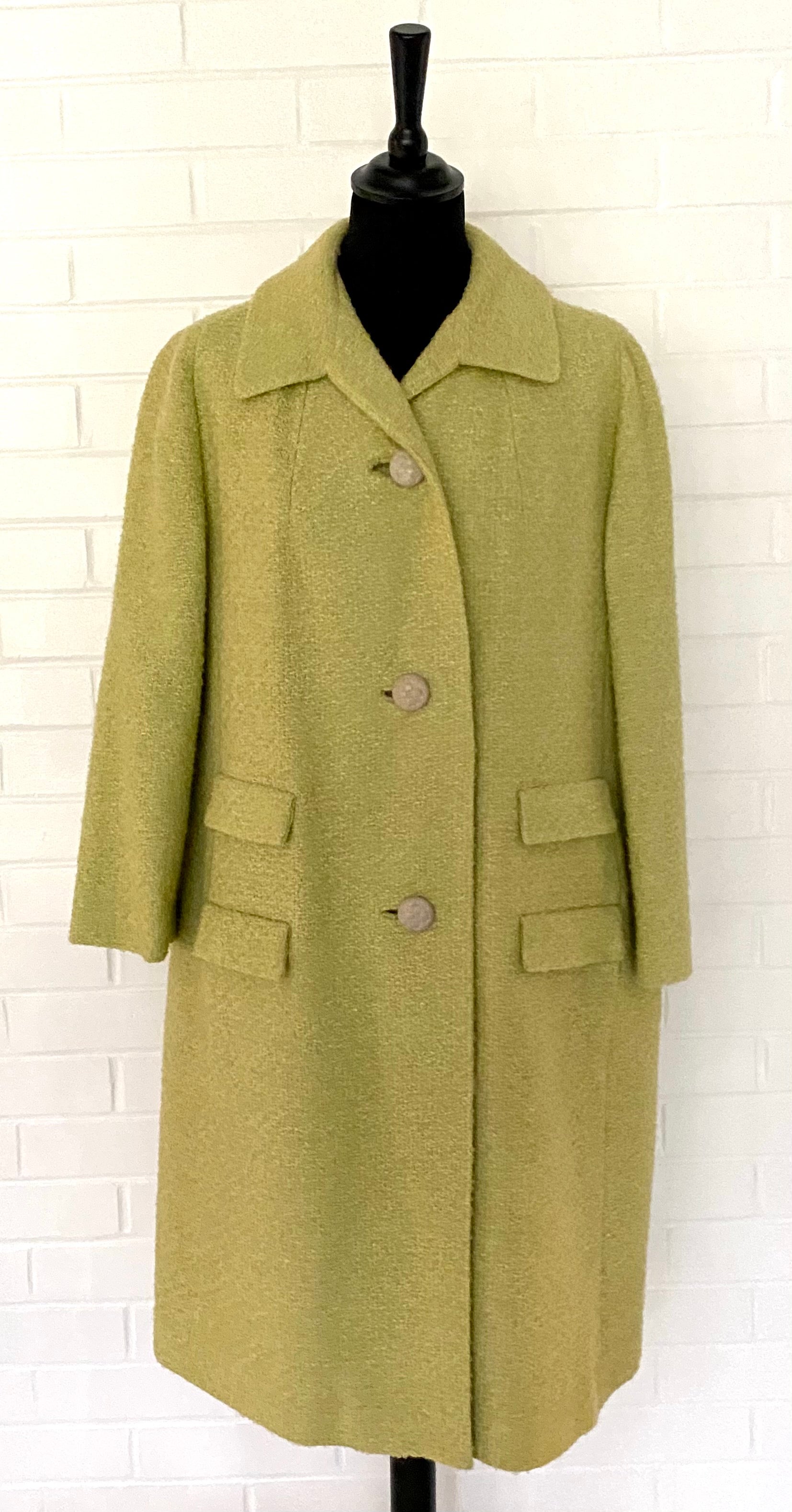 Style: Long coat with a collar and button front. Front pocket flap details with real built in seam pockets. The sleeve are bracelet length and it is fully lined.