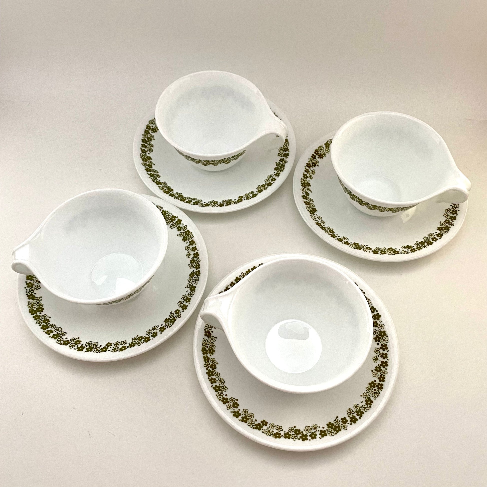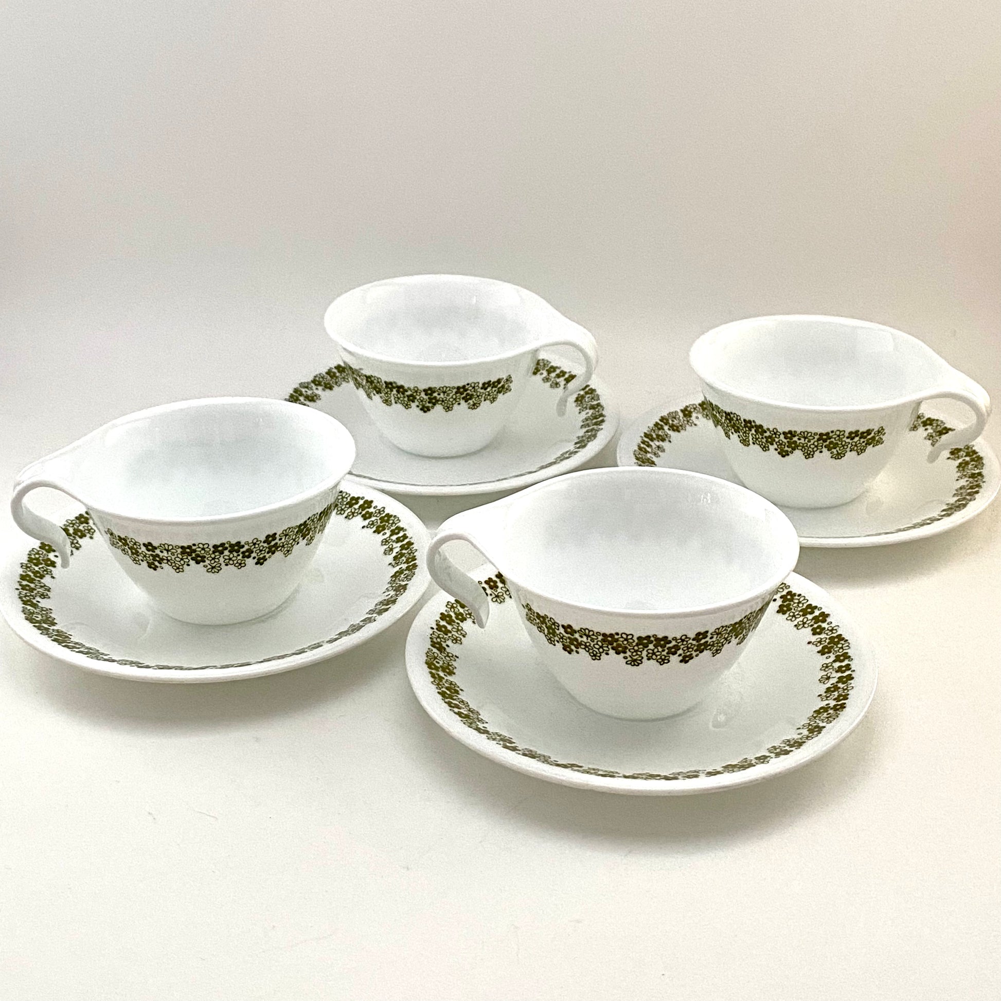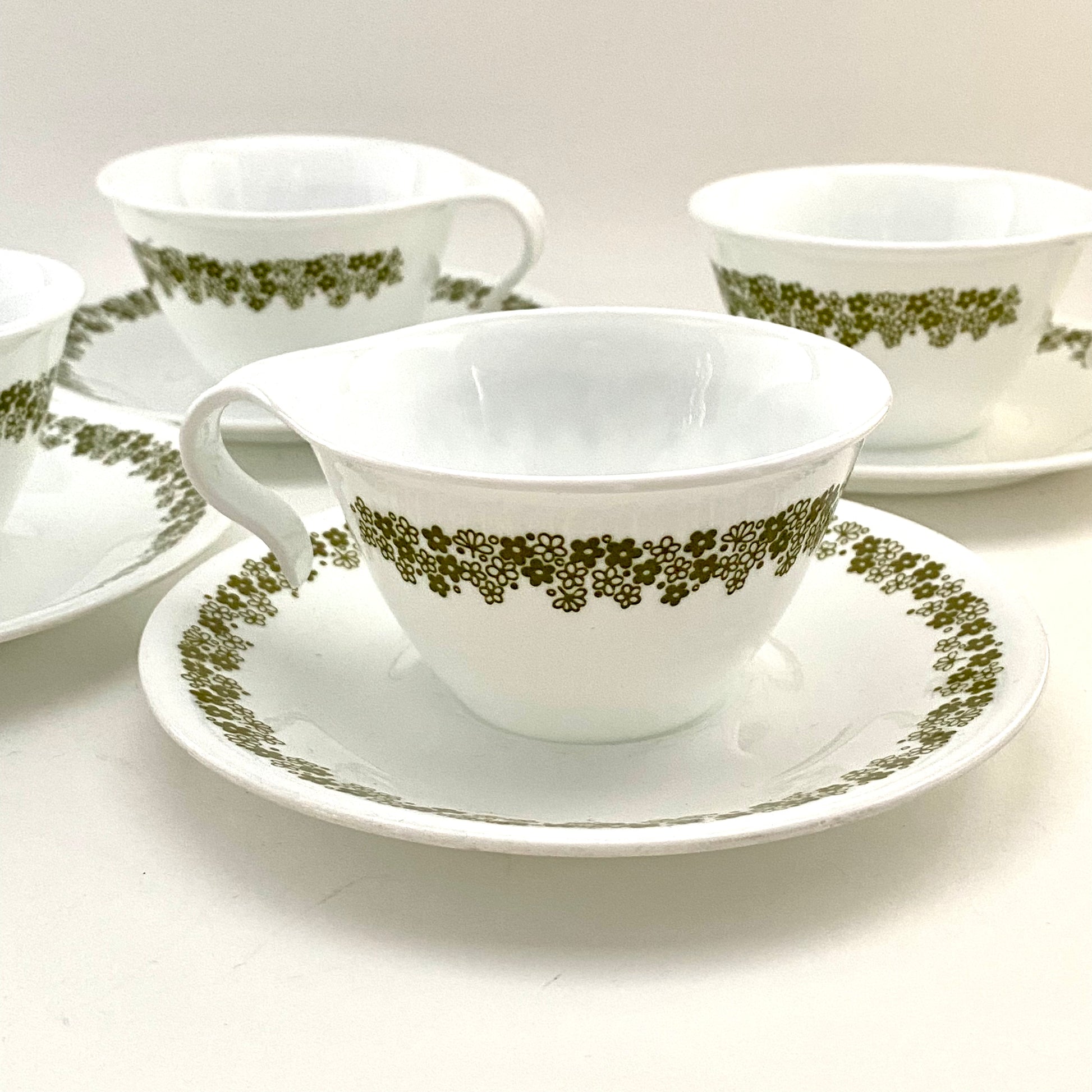 1970s Corelle Livingware Spring Blossom/Crazy Daisy Cups & Saucers