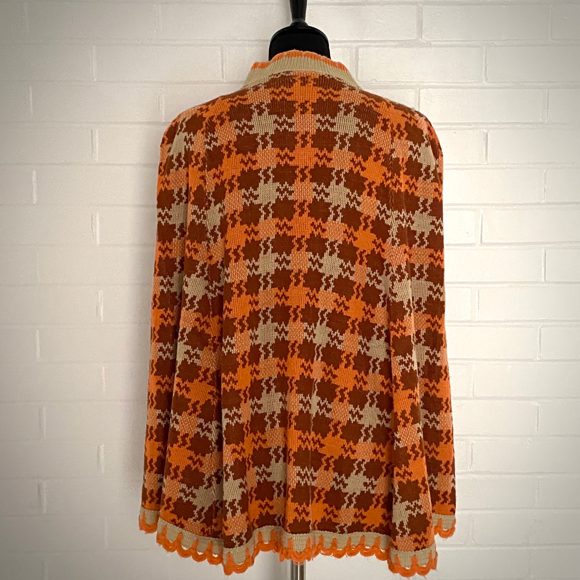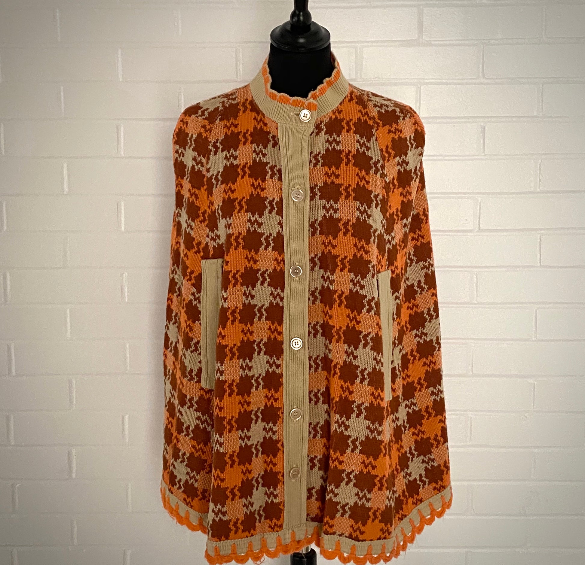 Style: Sweater capelet with round, scalloped collar and a button front opening