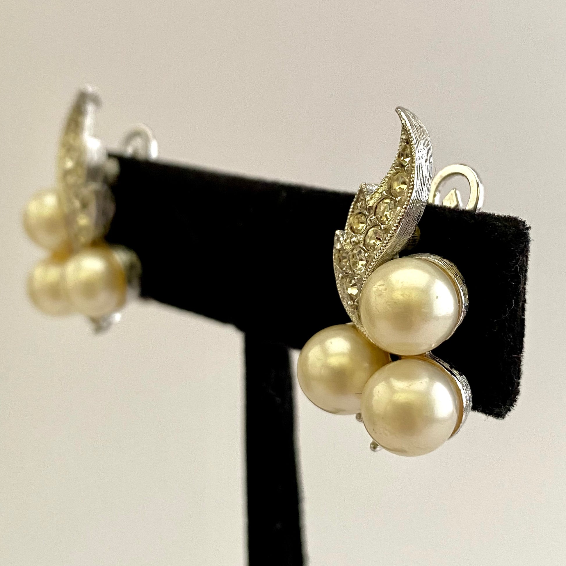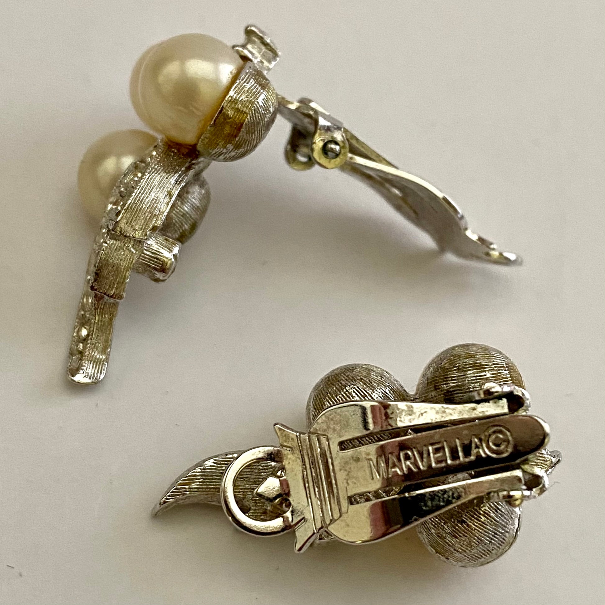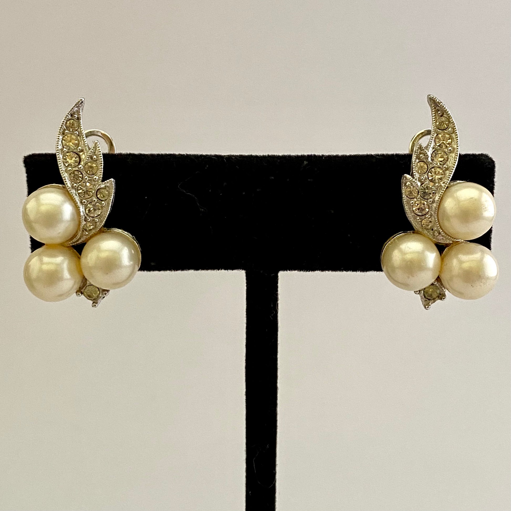 Late 50s/ Early 60s Marvella Pearl & Rhinestone Earrings