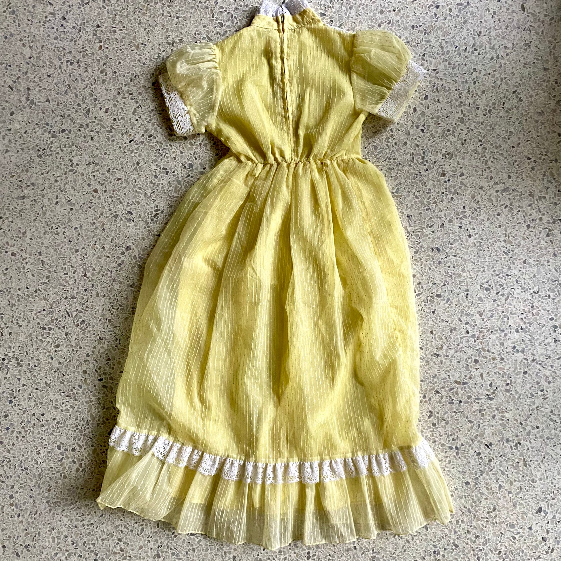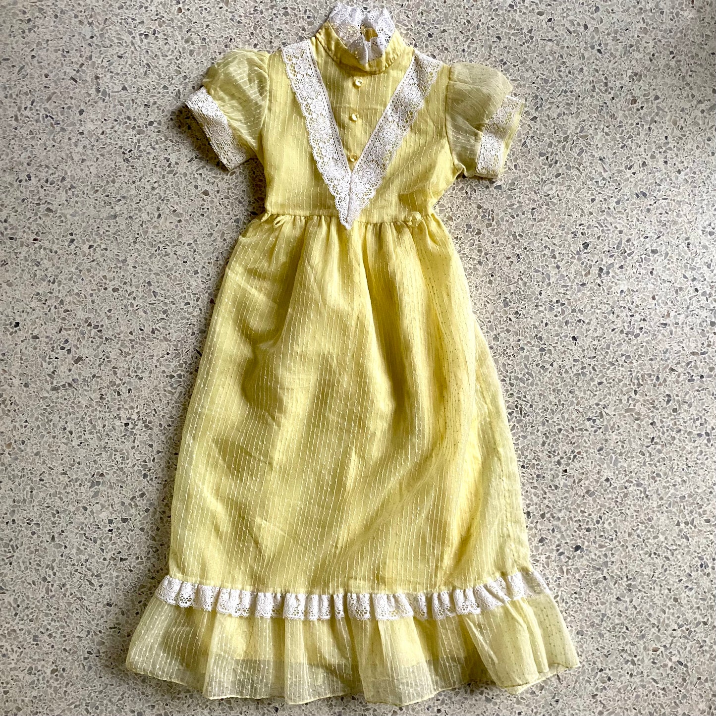 Style: A stand collar, puff short sleeve maxi dress with lace details. It is fitted at the waistline, but the back of the waist has elastic in it. There is a center back zipper opening and a ruffle at the hemline. The dress is fully lined.